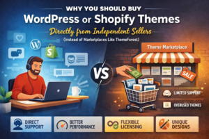 Buy WordPress Shopify themes from independent sellers is becoming a smarter choice for businesses that want better performance, support, and long-term value instead of relying on large marketplaces like ThemeForest. When building a website, choosing the right theme is one of the most important decisions you’ll make. Platforms like ThemeForest and TemplateMonster have made it… Continue reading Why You Should Buy WordPress or Shopify Themes Directly from Independent Sellers (Instead of Marketplaces Like ThemeForest)
